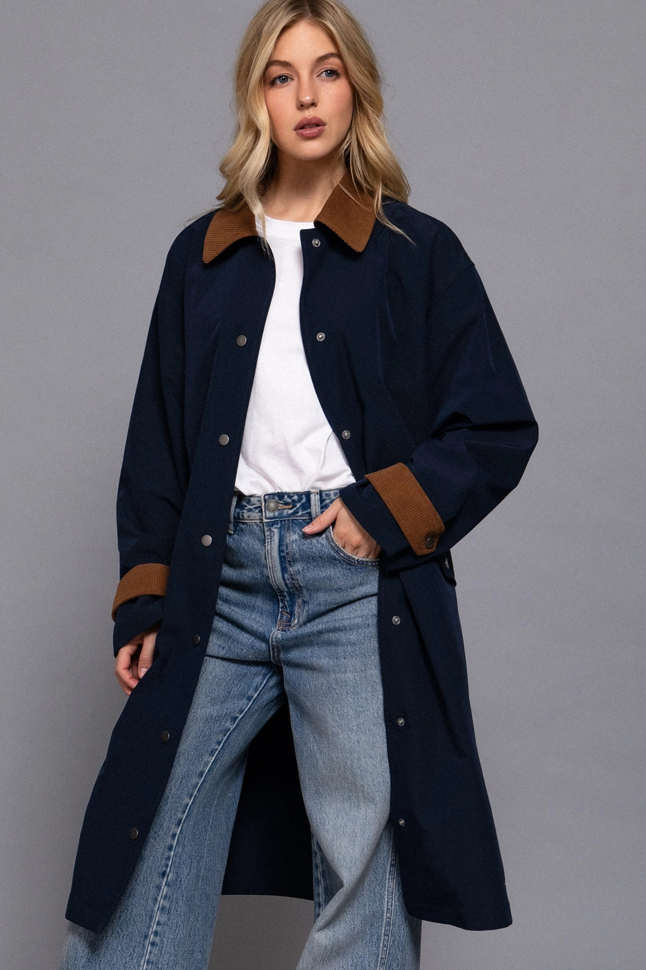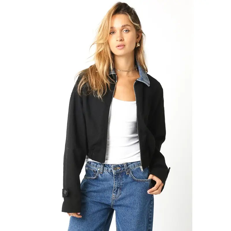 Mock Neck Pocket Sweater- Navy